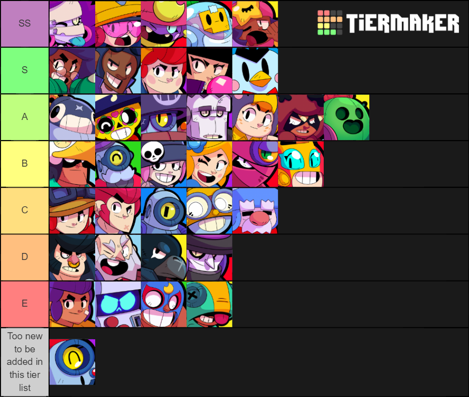 Tier list v22 dropping in a few days! Create and share tier lists for the lols, or the win. Drag and drop items from the bottom and put them on your desired tier. View win rates and rankings. This brawl stars tier list is currently the best source for players at high trophies to determine which ones are the best brawlers in the game right now. These 23 pros voted on 43 brawlers in 8 game modes ties were broken by stats from top 200 players giving one brawl stars merch box (spike plush, pins, etc) to one lucky winner to celebrate the new year! Last observations about the brawl stars tier list. Brawl stars daily tier list of best brawlers for active and upcoming events based on win rates from battles played today. Tier list for all maps and modes. See more of brawl stars on facebook. Brawler tier list for brawl star's robo rumble game mode. Contributors must be mentioned by reddit username or discord tag. Tier list brawl stars skins 2020 (temp 2 + colette trixie).